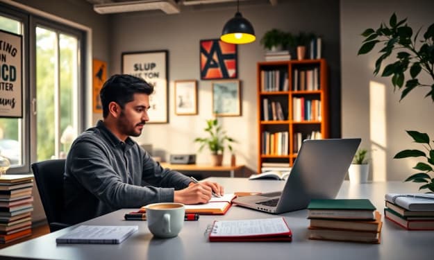 In a small, dimly lit room painted with the faint warmth of a dusty peach-colored wall, a man reclined casually against the headboard of a creaky old bed. A pencil hung between his lips—not because he had forgotten about it, but because it belonged there, like a soldier ready to draw his sword at any moment. His uncombed hair crowned his head like a forest left untamed, and his eyes, half-aware of the world, gazed into the spaces most others didn’t dare to peer into. He was not idle. He was thinking.