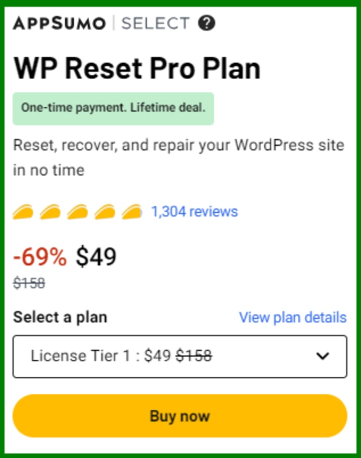 WP Reset Pro Plan – AppSumo Lifetime Deals $49